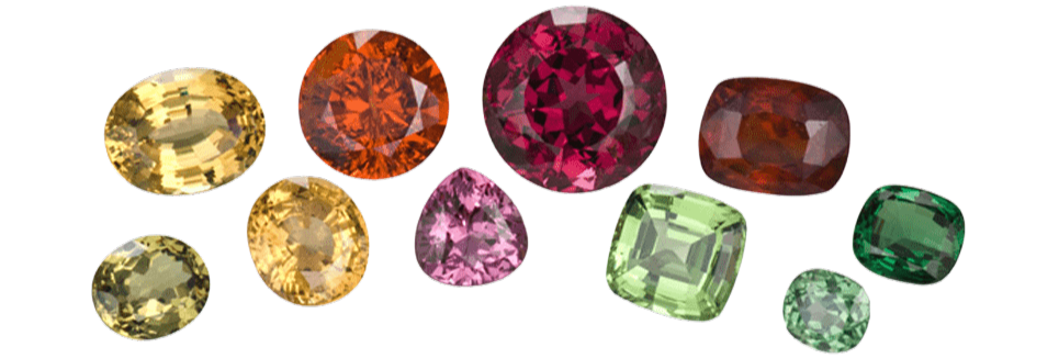 Obwohl ein Granat Stein die gleiche Kristallstruktur (kubisch) wie ein Diamant hat, gehört er zu einer eigenen Gruppe von Mineralien. Er unterscheidet sich vom Diamanten durch seine chemische Zusammensetzung, seine Farbenvielfalt und seine Eigenschaften. Obwohl einige Arten des roten Granats auf allen Kontinenten verbreitet sind, sind andere Granate wie orangefarbene Spessartine und Hessonite oder grüne Demantoide und Tsavorite viel seltener und entsprechend klein ist auch die Anzahl ihrer Fundorte. Insgesamt gibt es mehr als 20 Granatsorten, die alle Farbnuancen aufweisen.
