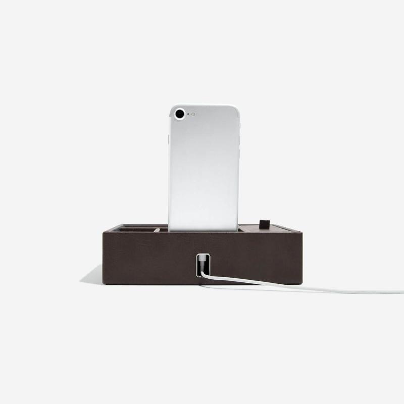 • mit Ablageplatz für Ihr Handy und Ihre Uhr sowie Öffnungen für die jeweiligen Ladekabel