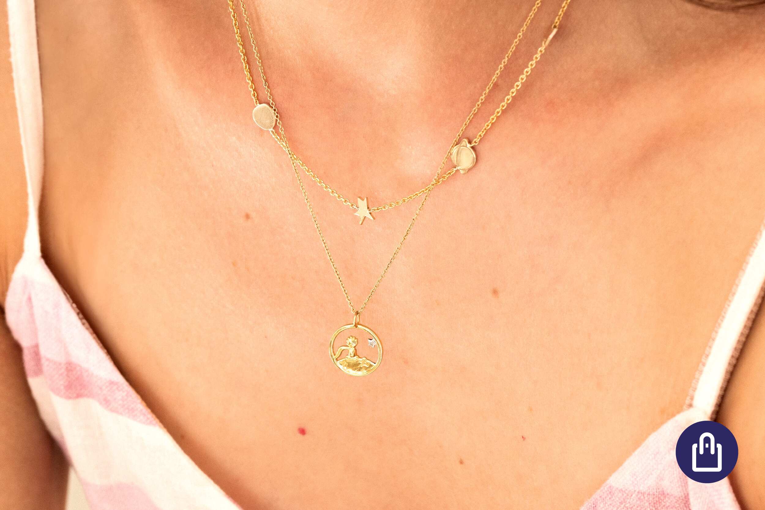 Ob Sie nun minimalistische Stücke mit Sternen bevorzugen oder kunstvolle Ketten mit Der Kleine Prinz Anhänger, Ringe, String-Armbänder oder Ohrringe mit Motiven der wichtigsten Figuren aus der Geschichte wählen, denken Sie an die Worte des weisen Fuchses: