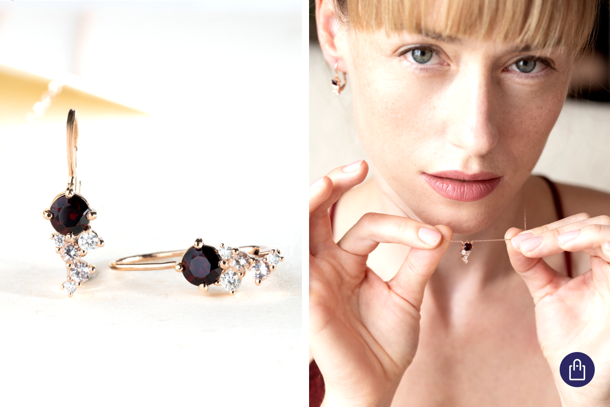 Während uns die olivgrünen Moldavite mit ihrer stellaren Herkunft verzaubern, repräsentieren die feuerroten Granate den traditionellen tschechischen Adel auf dem Gebiet der Mineralogie. Beide Edelsteine sind jedoch durch ihre Originalität, ihren Charme und ihren eleganten Hauch von Geschichte verbunden.