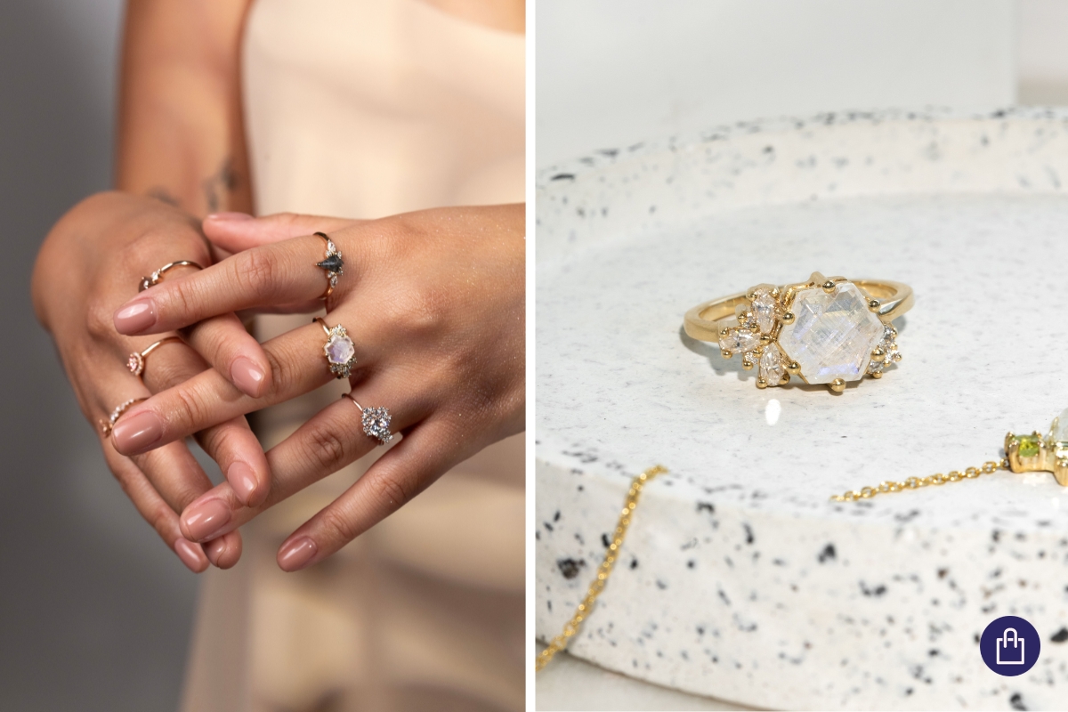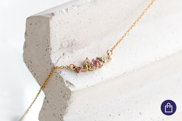 - Peach Fuzz fühlt sich in sanften Pastelltönen von Rosa über Blau bis hin zu Grün zu Hause und kommt daher in Cluster Schmuckstücken, die sich typischerweise durch die Anhäufung mehrerer Edelsteine auszeichnen, besonders gut zur Geltung. Ein eindrucksvolles Beispiel für diese traumhafte Kombination ist die Cluster Kette mit Edelsteinen Kianna.