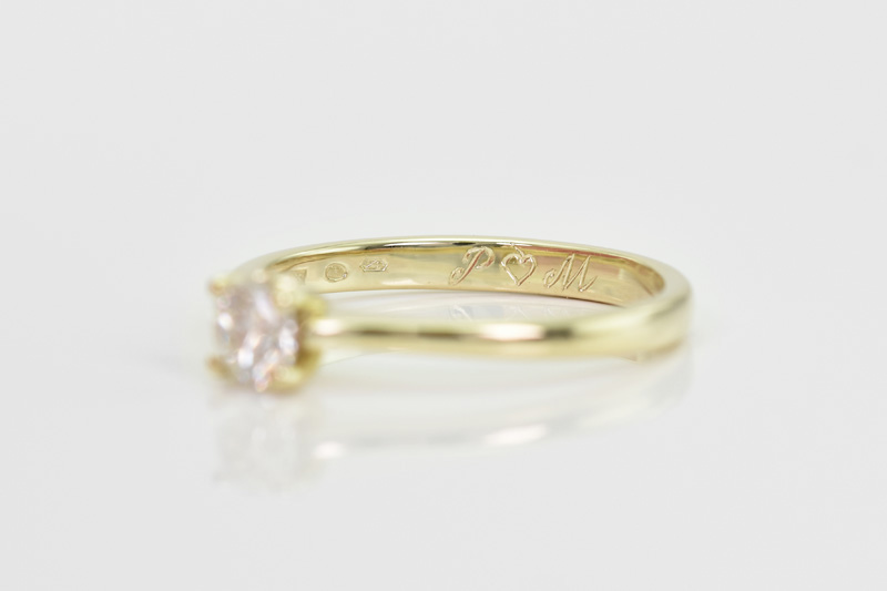 In diesem Fall wird ein FireScan Lasergerät zum Gravieren eingesetzt, welches nahezu unbegrenzte Möglichkeiten hat. Sein schwenkbarer Kopf ermöglicht es dem Goldschmied, außen und innerhalb des Rings zu gravieren. Dank der automatisch gesteuerten Spitze ist die Gravur absolut genau auch was Ihre Vorgabe betrifft.