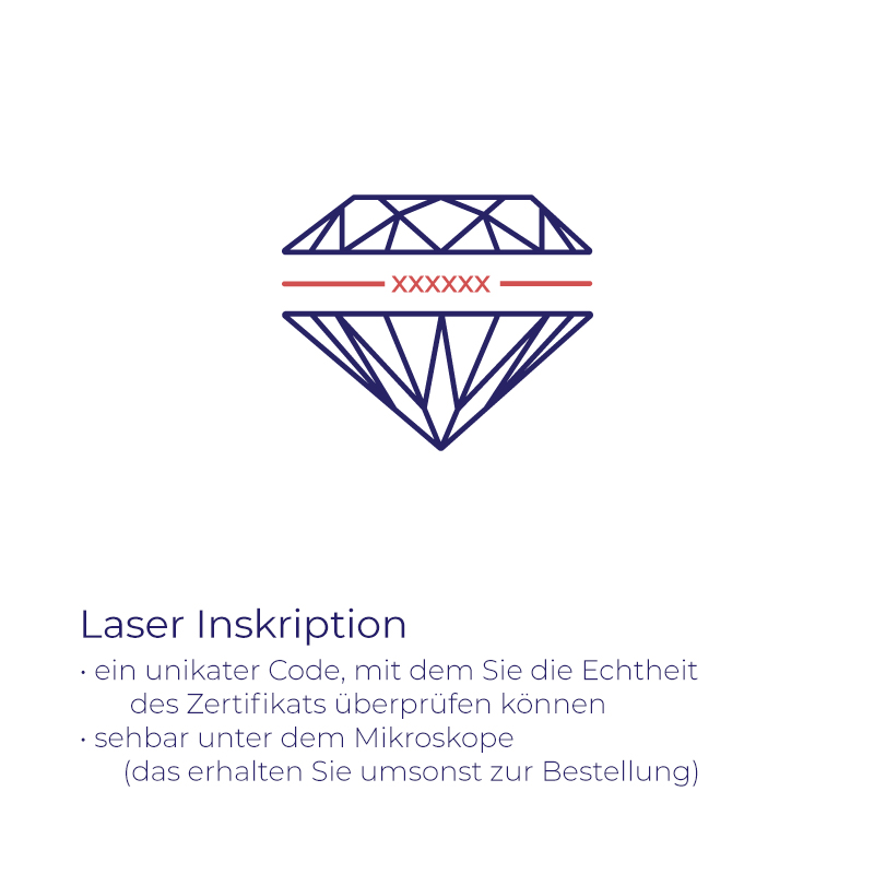 Der Diamant hat eine Laserbeschriftung auf der Rundiste, dank welcher Sie dessen Echtheit unter dem Mikroskop überprüfen können.