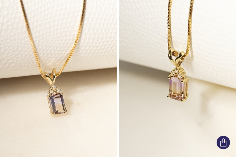 Die rechteckige Form ist normalerweise lang und schmal, in Ausnahmefällen kann sie sich einem quadratischen Erscheinungsbild nähern. Edelsteine in einem Stufenschliff oder als Cabochon werden sowohl als Seitensteine (sie passen gut zu anderen Steinen) als auch als zentrale Elemente von Einzelringen, Ohrringen oder Halsketten verwendet.