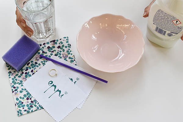 Vergessen Sie bei der Reinigung auch nicht, welche Metallart Sie vor sich haben. Zum Beispiel ist Gold ein weiches Metall, und ein Ring aus diesem Material kann auch während des normalen Tragen abgerieben werden. Frei verkäufliche Spezialprodukte für Schmuck sind eine gute Wahl, wenn es darum geht, genau solche Juwelen zu pflegen. Bei Edelsteinen muss man jedoch wirklich vorsichtig sein, denn der Stein sollte überhaupt nicht mit einem solchen Reiniger in Berührung kommen. Wenn Sie Schmuck mit porösen Steinen oder Perlen haben, ist die beste Alternative eine Schüssel mit warmem (nicht heißem) Wasser und ein paar Tropfen eines sanften Spülmittels.