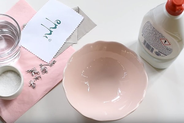 In einem Behälter mit heißem Wasser, drücken Sie eine Zitrone aus und fügen Sie drei Esslöffel Kochsalz hinzu. Anschließend können Sie ein Juwel in dieses Bad einlegen, aber es sollte nicht eins mit Edelsteinen verziertes Juwel sein. Nach fünf Minuten entfernen Sie es wieder aus diesem Bad und trocknen es mit einem weichen Tuch.