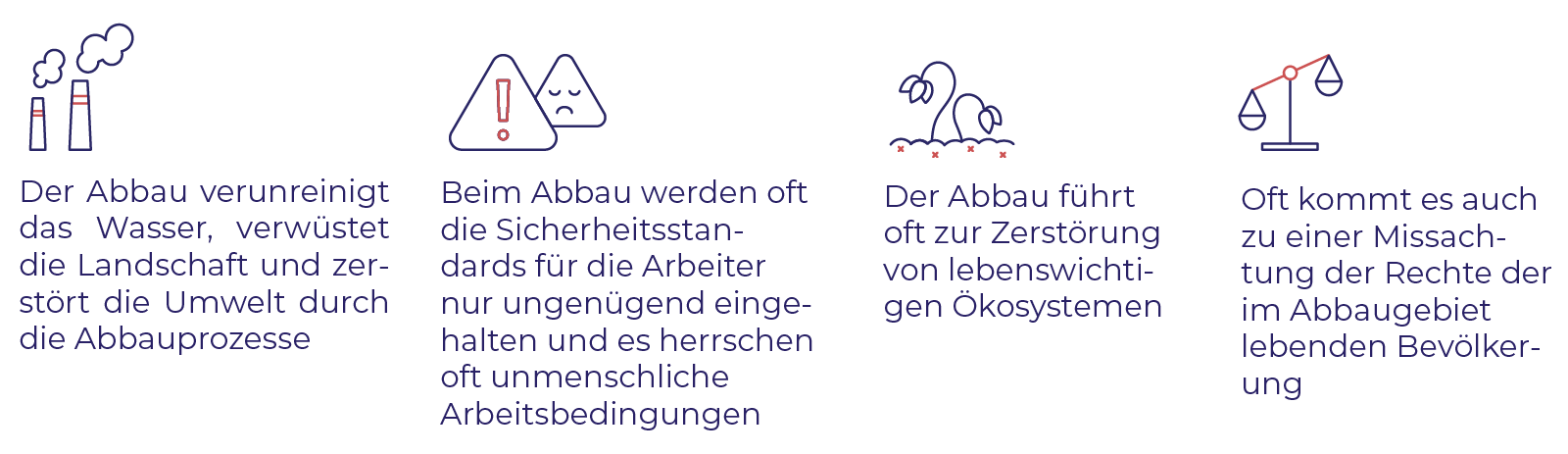 Der Abbau von Silber stellt eine eindeutige Belastung für die Umwelt dar. Der Silberbergbau verursacht Erosionen und kontaminiert das Grundwasser mit Quecksilber und Cyanid. Weil die Silberproduktion relativ billig ist, ist es sehr schwierig, die Bergleute von nachhaltigen Methoden zu überzeugen.