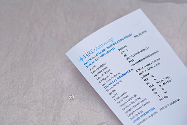 HRD Antwerpen veröffentlicht eine Reihe von Berichten und Ausweisen auf der Grundlage seiner Klassifizierung, die die Eigenschaften von Diamanten beschreiben. Darauf basiert der Preis eines Steins. Die Palette der Abstufungen bei Edelsteinen ist viel größer als in anderen Laboratorien.
