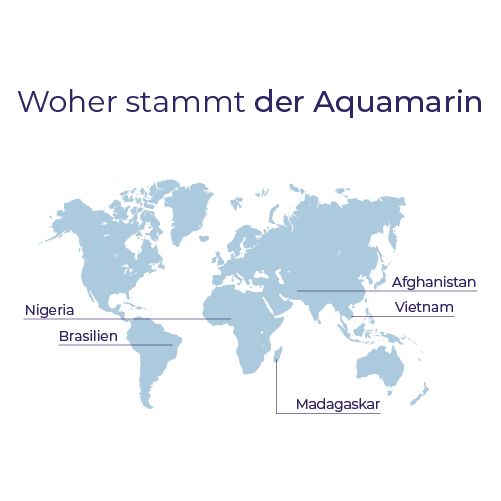 Der blaue Aquamarin gehört zur Familie des Berylls, also zu der Gruppe von Mineralien, zu der auch Smaragd und Morganit gehören. Der Aquamarin ist wegen seiner atemberaubenden blauen Farbe berühmt, die an die Meeresoberfläche erinnert. Diese wundervolle Farbe verdankt er den in ihm enthaltenen Eisenanteilen. In der Natur kommt Aquamarin in reichlichen Mengen vor und seine physikalischen Eigenschaften sind große Härte und wunderschöner Glanz. Der rohe Aquamarin lässt sich leicht verarbeiten, deshalb wird er gern in die unterschiedlichsten und ausgefallensten Formen geschliffen.