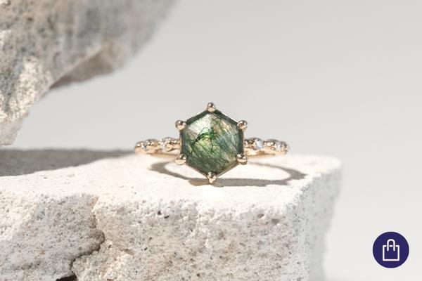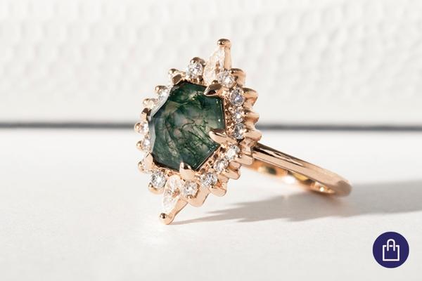 Ein weiterer seltener Typ ist der rosa Moosachat, der durch Eisen- und Manganoxide seine Färbung erhält. Diese Varietät zeigt sich in sanften Rosa- und Brauntönen, die den Stein romantisch und warm wirken lassen. Ob grün oder rosa, der Edelstein Moosachat ist aufgrund seiner optischen und strukturellen Vielfalt ein gefragtes Material für Schmuck wie Moosachat Verlobungsringe, Anhänger und Armbänder.