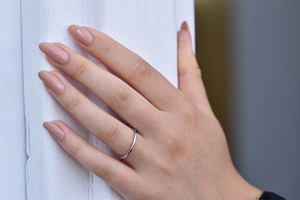 - Die flache Variante des Rings ähnelt im Querschnitt einem gespiegelten, umgedrehten Buchstaben D und liegt gut am Finger an. Sein strukturierter Look wird vor allem von denjenigen geliebt, die Minimalismus mögen.
