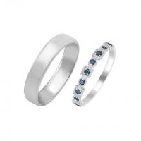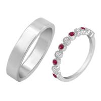 Traditionelle Eheringe können manchen Leuten etwas schlicht und langweilig vorkommen, daher haben viele Juweliere ein interessantes Ringpaar in ihr Angebot aufgenommen. Das Set besteht aus einem gewöhnlichen großen Ehering in einem gewählten Profil, der kleinere Ring aber ist viel interessanter, da er rundherum mit Edelsteinen besetzt ist. Eternity-Hochzeitssets sind mit Diamanten in beliebten Farbtönen geschmückt - von traditionell weiß bis blau oder schwarz. Mit diesen Ringen können Sie nichts falsch machen, wenn Sie Diamanten mit farbigen Edelsteinen kombinieren.