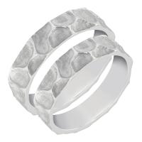 - Hammerschlag (Hammering, Icing): Mit einem Juwelierhammer wird eine unverwechselbare und rustikale Oberfläche erzielt. Die Grobheit des Musters hängt von der Kraft der Schläge ab, die der Goldschmied anwendet. Es ist eine sehr haltbare Oberfläche. Das Hammerschlagmotiv lässt sich in klassisches Hämmern (am häufigsten wird ein Hammer mit abgerundeter Seite verwendet, um überlappende Grübchen zu erzeugen), vertikales Hämmern (mit einem langen, schmalen Hammer wird ein Muster erzeugt, das an Baumrinde erinnert) und einritzendes Hämmern (verschiedene Werkzeuge werden verwendet, um verschiedene Muster zu erzeugen), unterteilen.