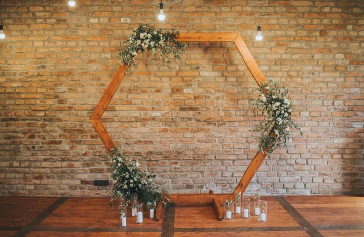 Ein weiterer Trend sind Hochzeiten unter freiem Himmel. Für eine Trauung im Grünen eignet sich besonders gut ein stilvoller Traubogen – idealerweise gebraucht oder geliehen, ganz im Sinne der Nachhaltigkeit. Besonders angesagt sind geometrische Formen wie Halbkreise, Dreiecke oder Sechsecke, die dem Setting eine moderne Note verleihen. Wie bereits erwähnt, lassen sich diese Bögen wunderbar mit grünen Elementen und Blumen in den gewählten Hochzeitsfarben dekorieren – für eine natürliche, harmonische Kulisse mit ganz persönlichem Flair.