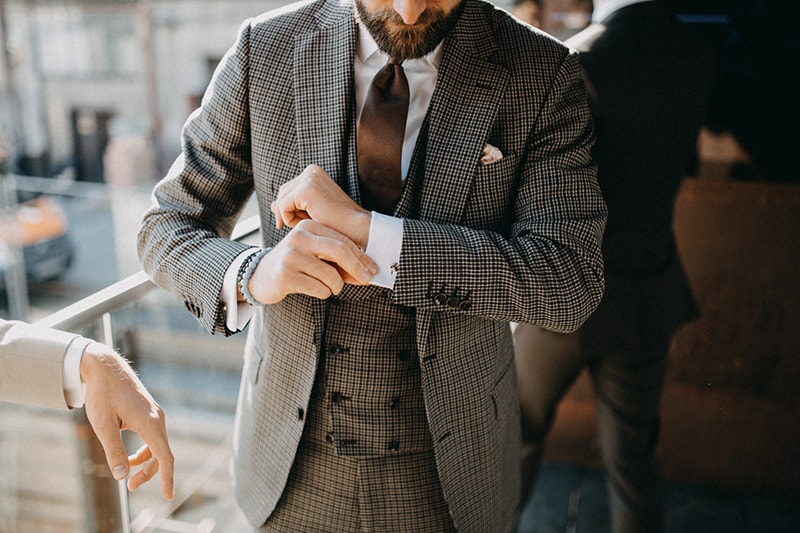 Als Bräutigam sollte man nicht davon ausgehen, dass jeder Anzug gleich ist, was das Material betrifft. Das merkt man spätestens im Hochsommer oder eben bei stark winterlichen Temperaturen. Das Winterwetter erfordert festere und auch mehr wärmende Materialien. Das kann eine dickere Wollmischung oder sogar ein Tweed sein. Beides kann je nach Wahl und Thema der Hochzeit sehr festlich wirken. Bei einer Bohohochzeit kann man beispielsweise auch über Samt nachdenken. Bei allen Themen ist eine gute Idee, über eine Weste nachzudenken. Dabei muss diese keineswegs bieder im gleichen Ton daherkommen, sondern kann auch in einem kräftigeren Ton (bspw. der Hochzeitsfarbe) und einem anderen Stoff wie einem dicken Wollstoff daherkommen. Der Vorteil ist, dass Sie diese Weste dann drinnen beim Hochzeitsessen wieder ablegen können und im Zweifel auch den Anzug wechseln.