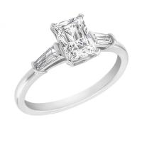 Ein Ring mit Diamant und Seitensteinen ist durch sein markantes Design gekennzeichnet: Der zentrale Diamant oder Edelstein wird von kleineren Steinen flankiert, die ihn stilvoll akzentuieren. Diese zusätzlichen Steine verleihen dem Schmuckstück mehr Funkeln und Brillanz als ein einfacher Solitärring. Während einige Kunden möglicherweise befürchten, dass die Seitensteine vom zentralen Stein ablenken könnten, bietet diese Ringart dennoch ein außergewöhnliches Preis-Leistungs-Verhältnis – so viel Glanz und Strahlen finden Sie bei keinem anderen Ringdesign. Üblicherweise hat der zentrale Stein die Form eines runden Brillanten oder eines Prinzess-Schliffs, wobei Juweliere häufig kreative Varianten anbieten, die sowohl klassische als auch etwas massivere Fassungen umfassen.