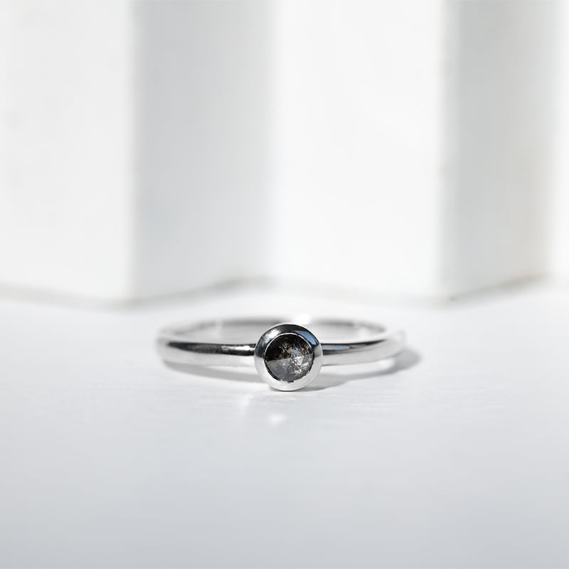 Minimalistischer Ring mit einem Salt and Pepper Diamanten Emilien