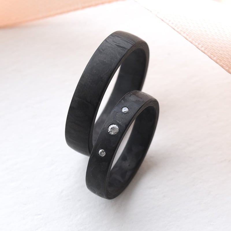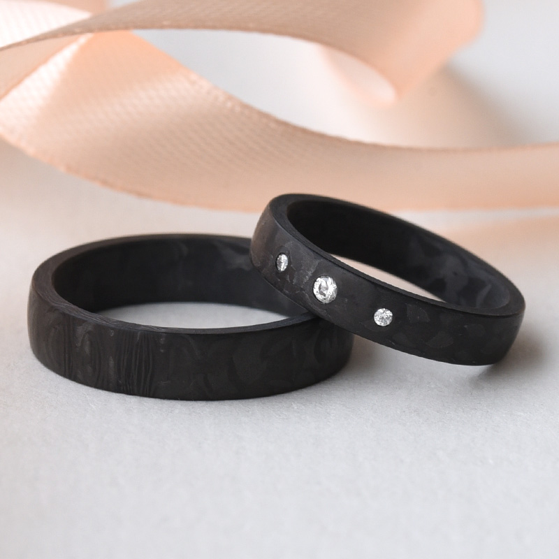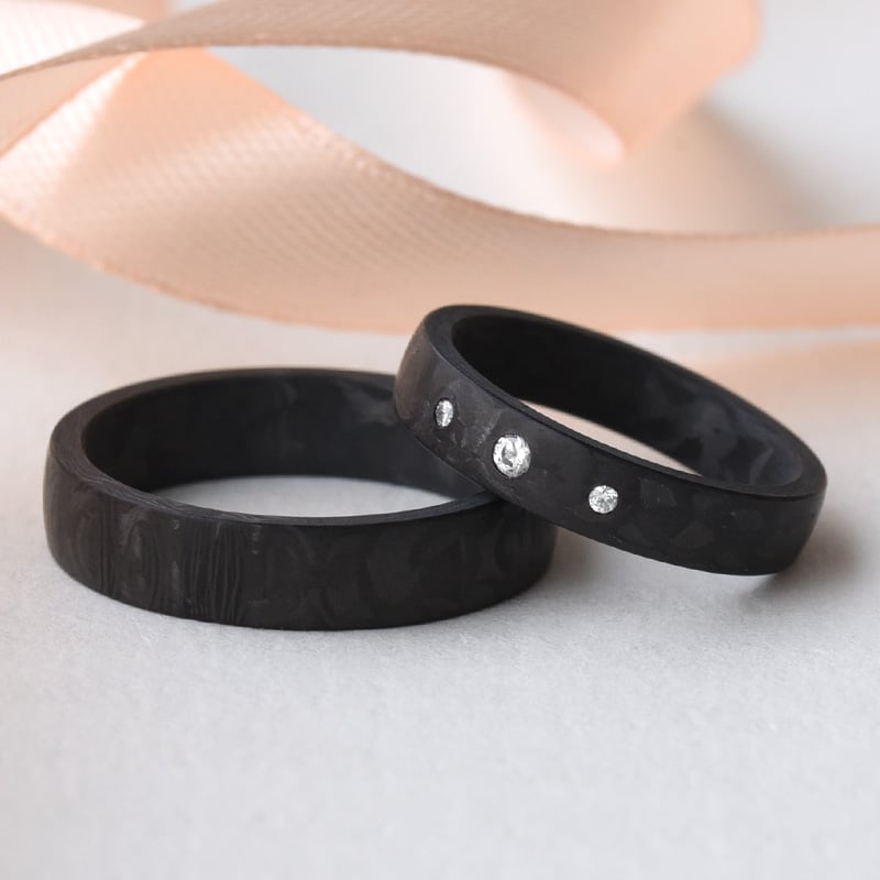 Abgerunde Trauringe aus Carbon mit drei Diamanten Azaliah