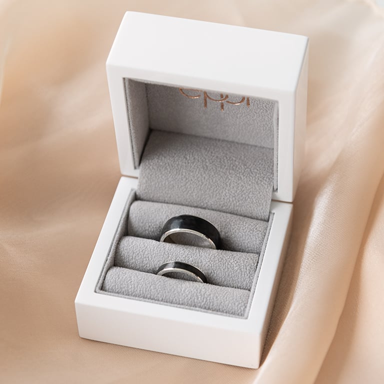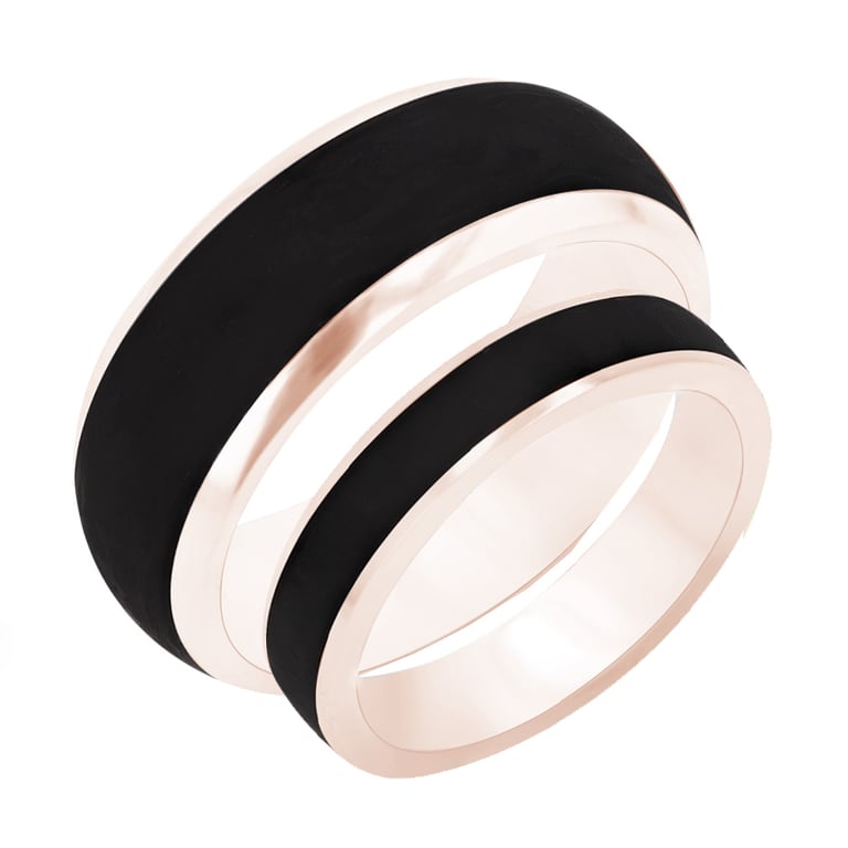 • traditionelle goldene Trauringe, die mit dem neuen Material Carbon ausgelegt sind