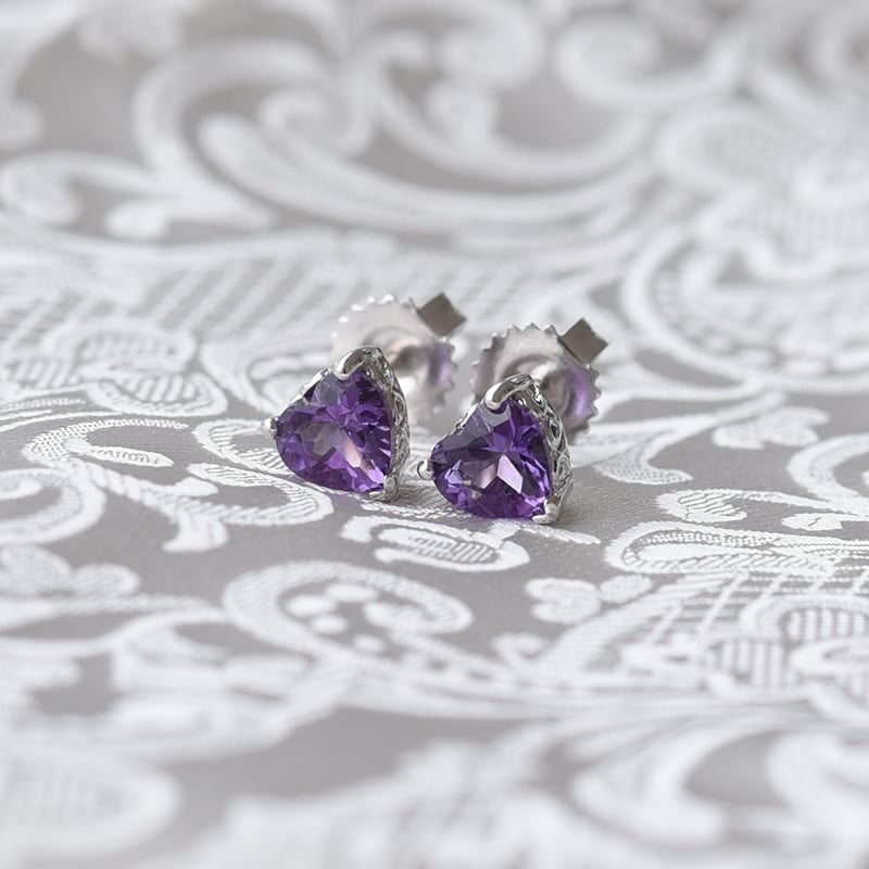 • die herzförmig geschliffenen Amethyste strahlen im typischen satten Purpur