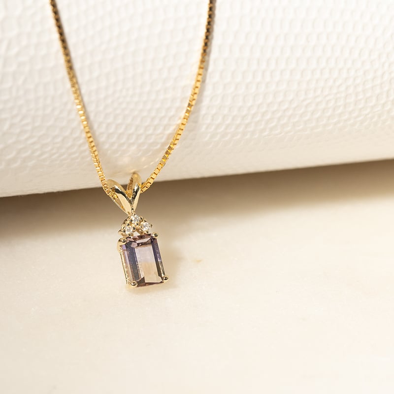 • deswegen haben Sie dieses Juwel gewählt, das diesen außergewöhnlichen zweifarbigen Edelstein namens Ametrin in sich trägt