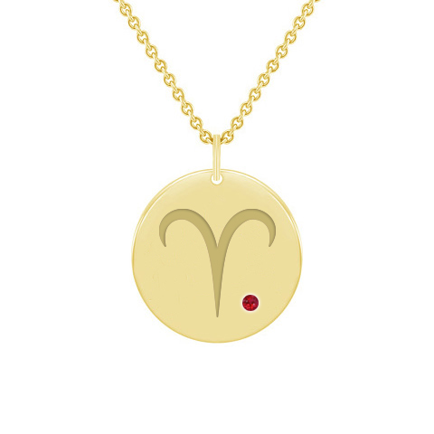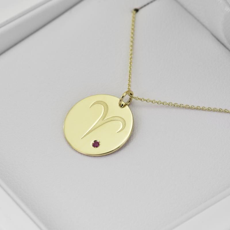 • genau so ein Schmuckstück ist der goldene Anhänger im Zeichen des Widders, der mit einem Rubin geschmückt ist