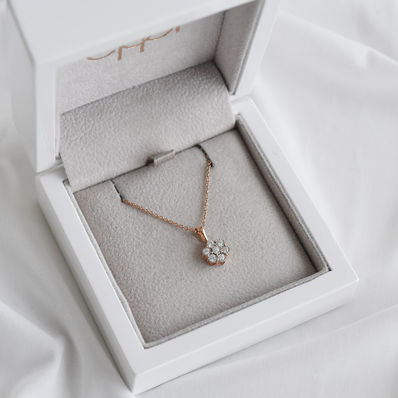 • 7 glänzende Diamanten strahlen in einem eleganten Anhänger