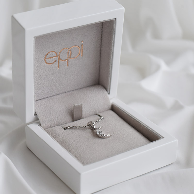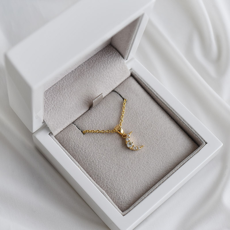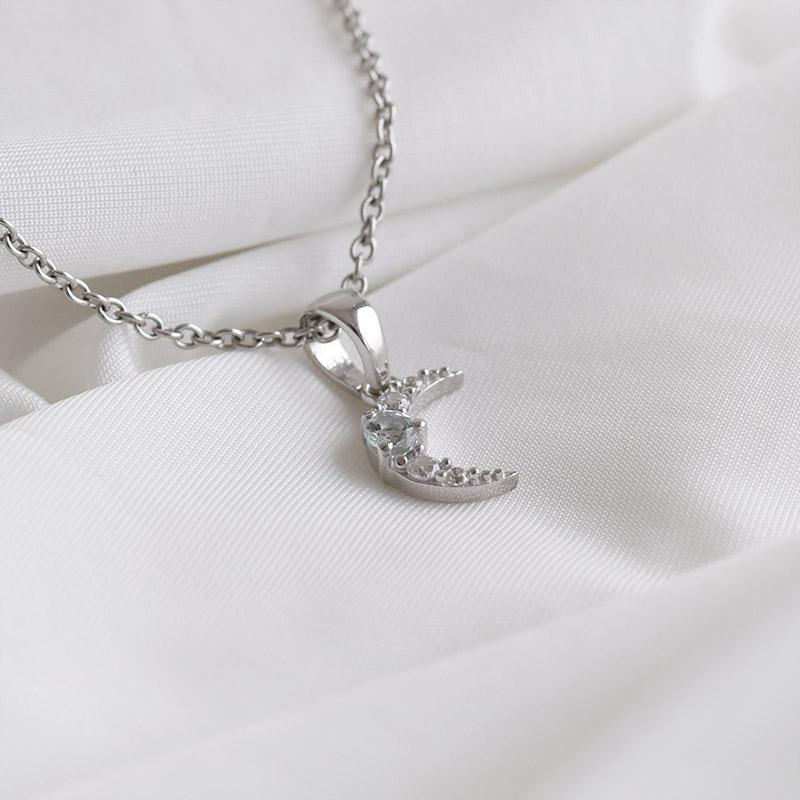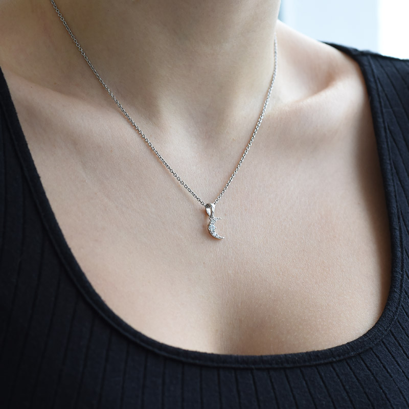 • dieser silberne Anhänger mit Halbmondmotiv wird Ihnen wunderbar stehen