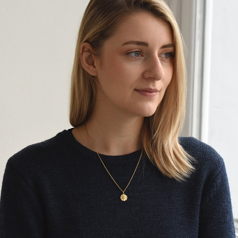 • der Anhänger aus vergoldetem Silber hat einen kubischen Zirkonia im Mittelpunkt