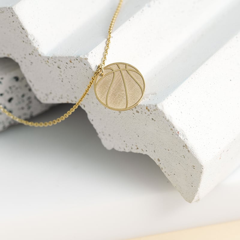 • ein Anhänger aus recyceltem Gold oder Platin in der Form eines Basketballs