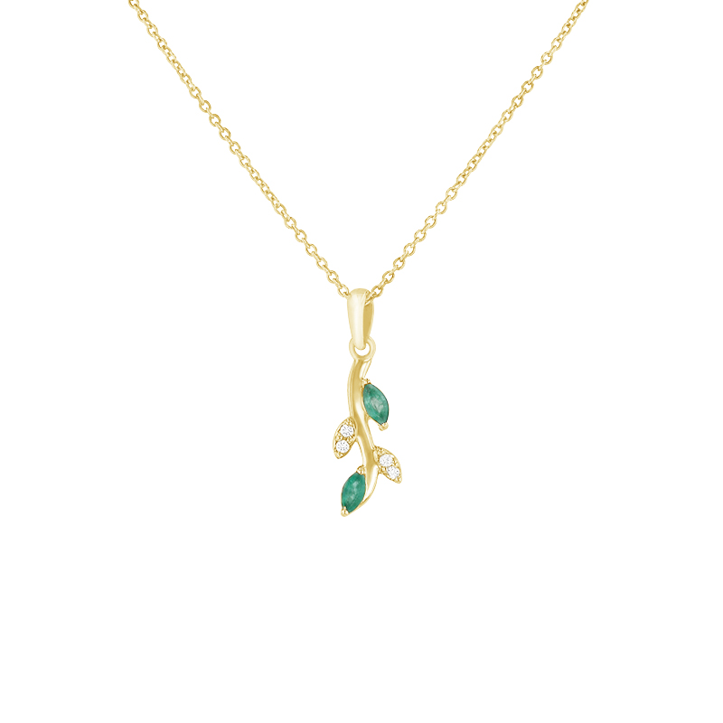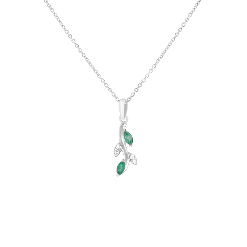 Anhänger in Blattform mit Diamanten und Smaragden Jaya
