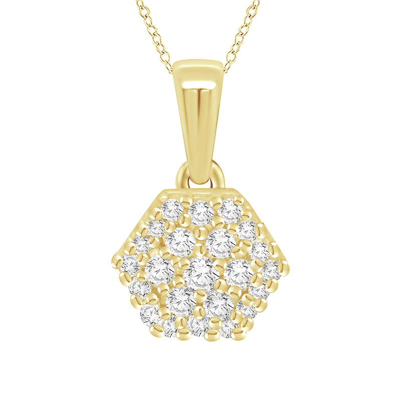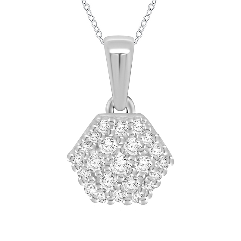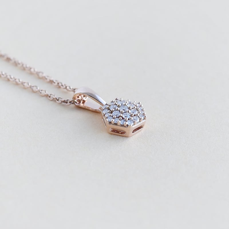 • eine ausgewogene Kombination von runden Lab Grown Diamanten in einem Anhänger in Hexagonform
