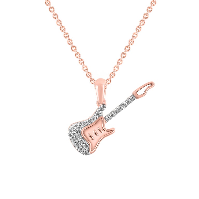 • dieser goldene Anhänger mit Diamanten in Form einer Gitarre ist ein stilvolles Accessoire, das jeder Musikliebhaber zu schätzen weiß