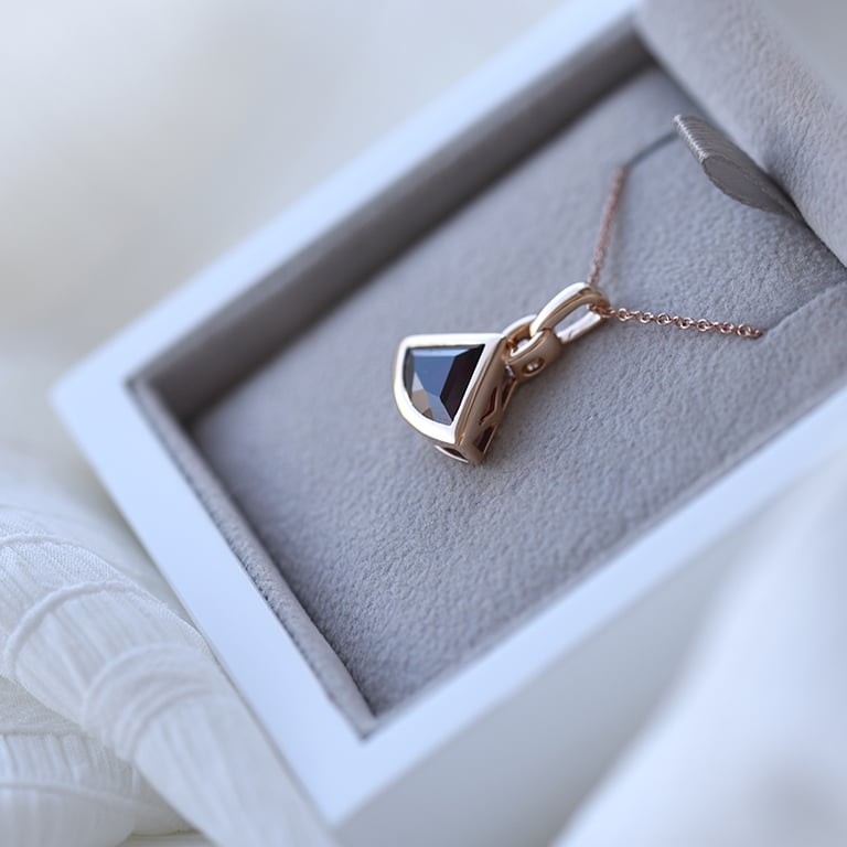 • das Roségold bringt den Granat zum Strahlen
