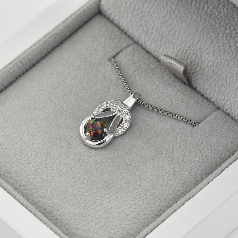 • ein geheimnisvoll schimmernder Opal in Schwarz ist der Mittelpunkt dieses Silberanhängers mit Zirkonia