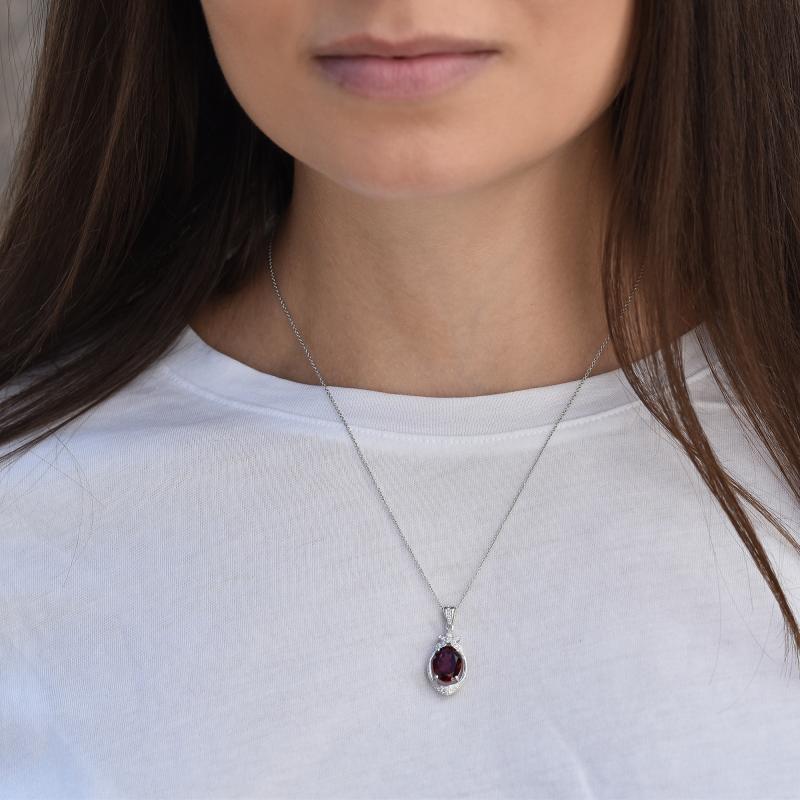 Anhänger mit ovalem Granaten und Diamanten Troels
