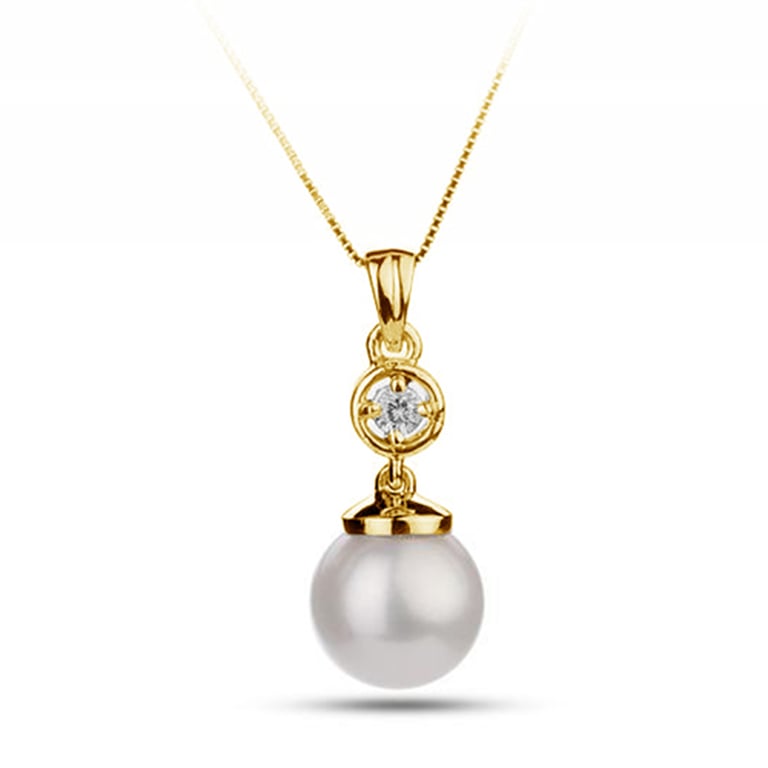 • schneeweiß ist diese Perle, die von einem Diamanten begleitet wird