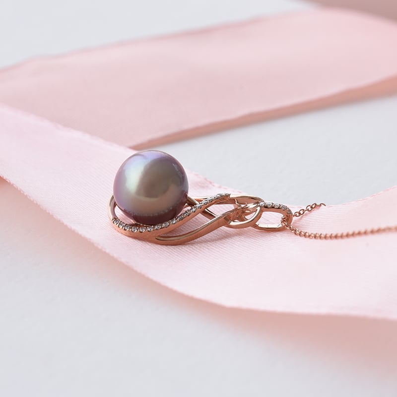 • die dynamische Form aus Roségold umhüllt die wunderschöne Perle