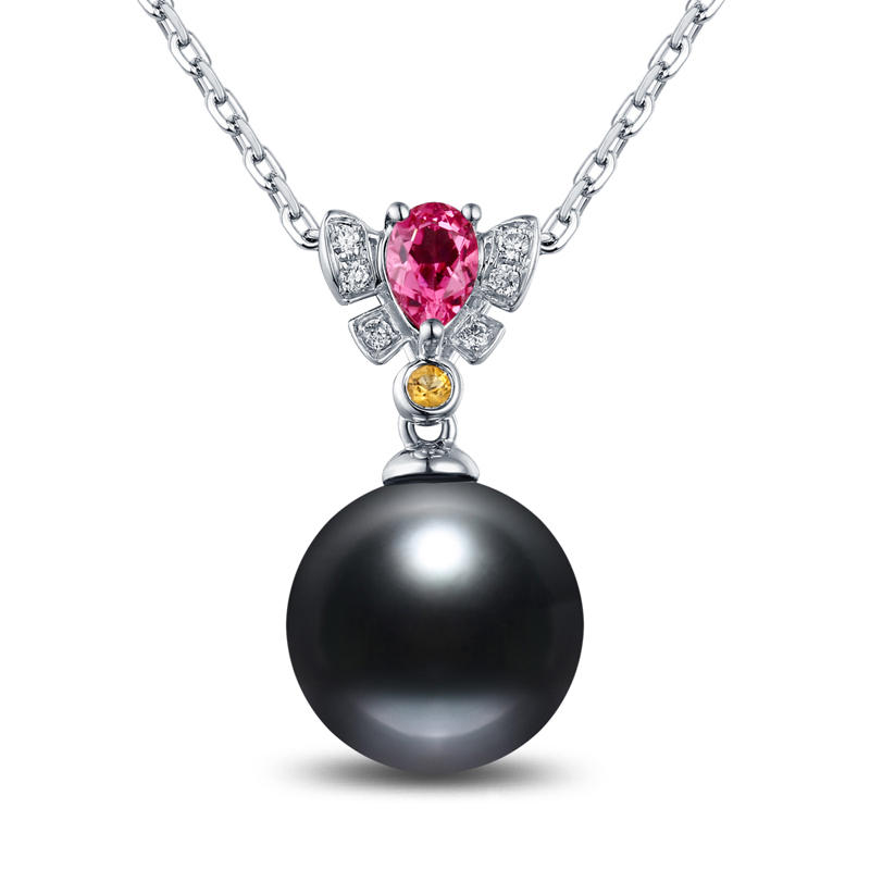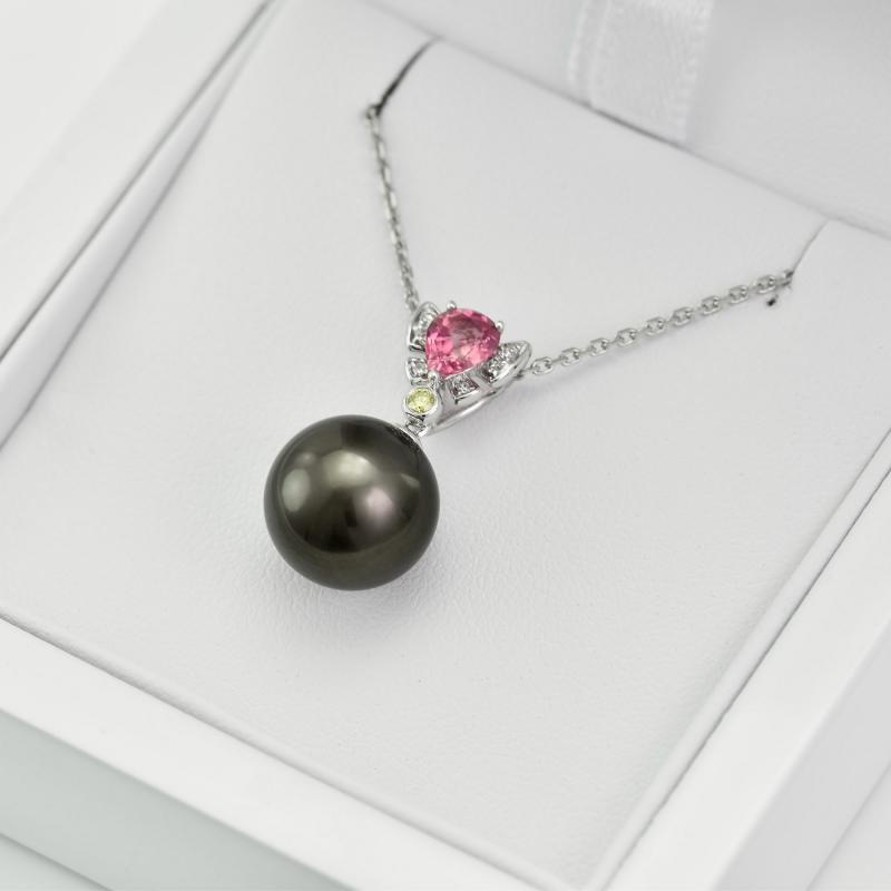 Anhänger mit schwarzer Perle, Diamant und Turmalin Raziel