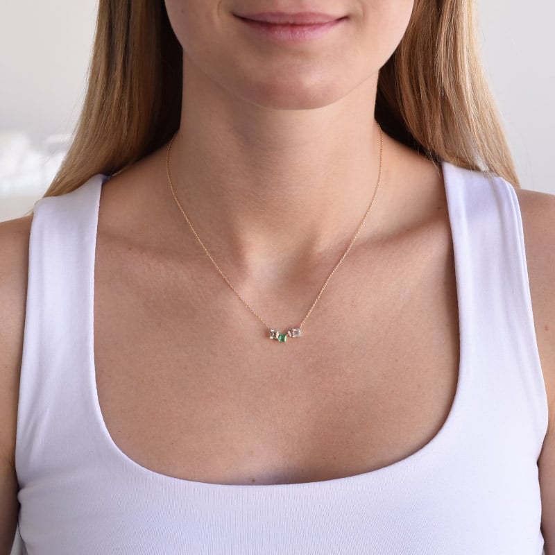 • den Anhänger dominieren kräftige Farbtöne von Grün in Kombination mit dem Glanz von 3 weißen Diamanten