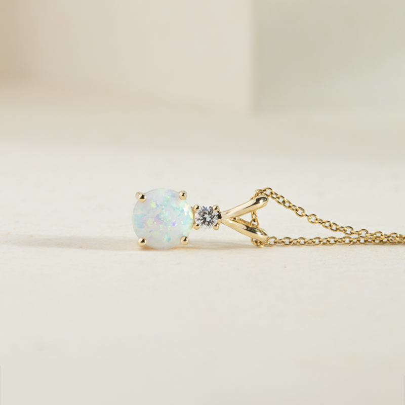 Anhänger mit weißem Opal und Diamanten Emolyna