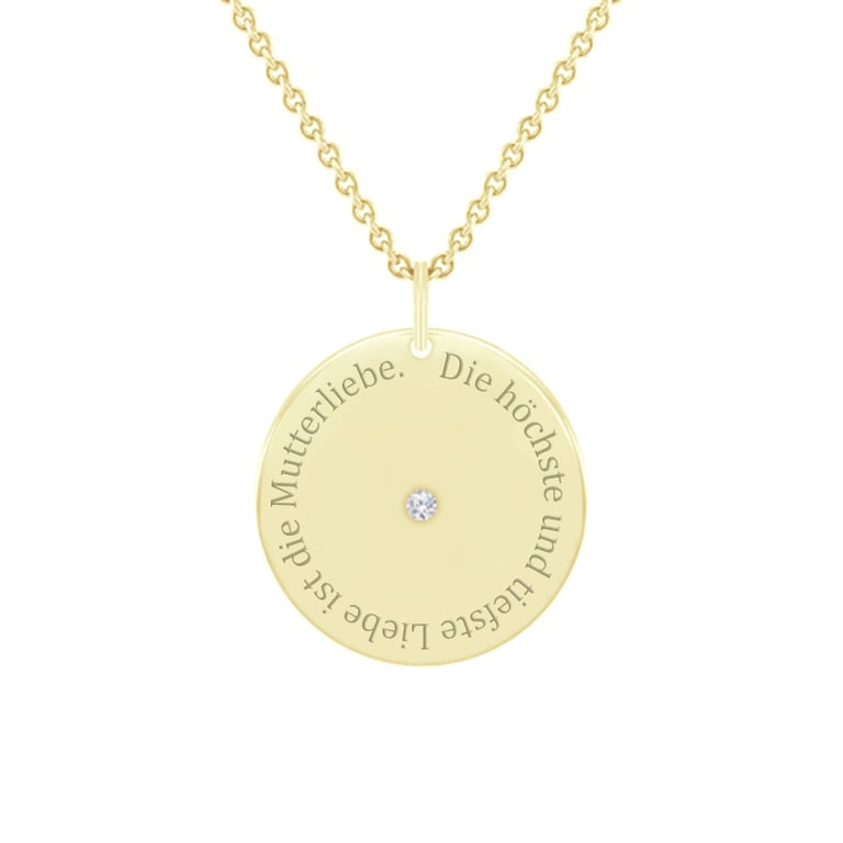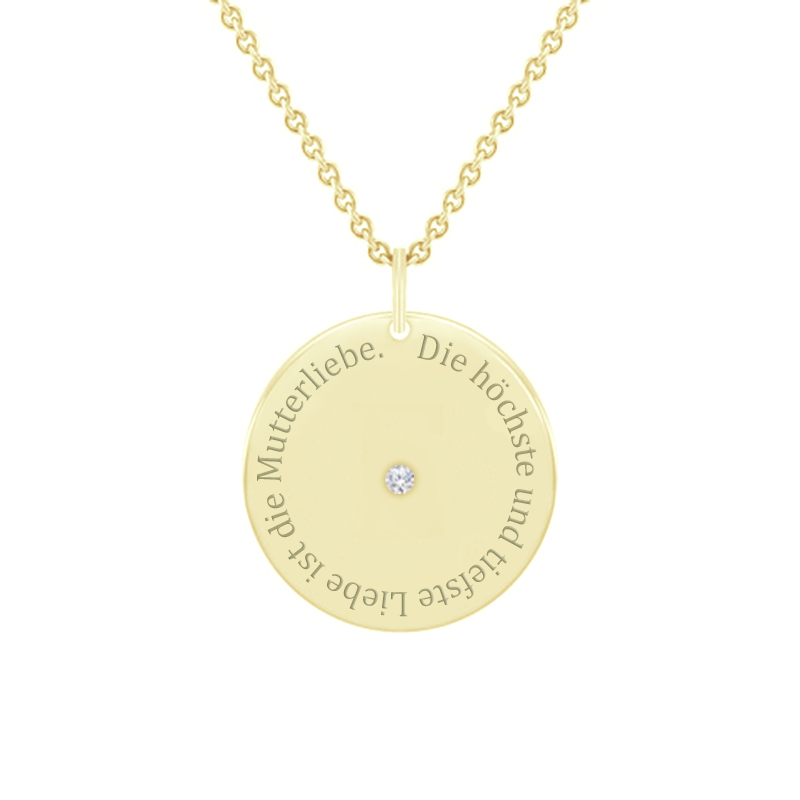 • minimalistischer Anhänger mit einem Zitat über Mutterschaft mit einem kleinen Diamanten