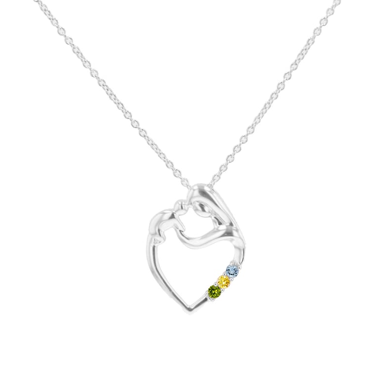 • der einzigartige Anhänger ist ein Dankeschön an jede Frau, die ein neues Leben auf die Welt gebracht hat, das Design, das das Herzmotiv und Mutter und Kind verbindet, ist mit 3 Edelsteinen nach Wahl verziert