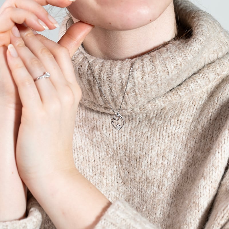 • das raffinierte Design in Form eines Herzen, in dem eine Mutter ihr Kind hält, wird von einem IGI zertifizierten Lab Grown Diamanten geschmückt