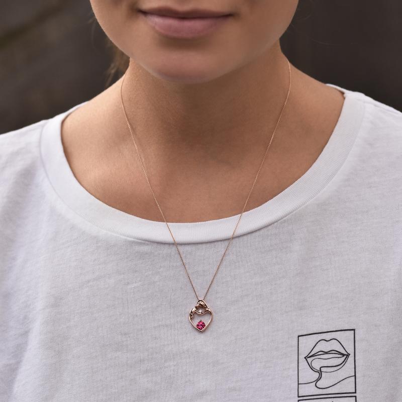 • ein eleganter Anhänger aus Gold mit dem Motiv von Mutter und Kind mit rosa Turmalin ist die richtige Wahl