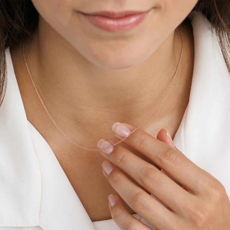 • dezente Ankerkette mit einer Breite von 1 mm und einer Länge von 40/45 cm aus 14k Gold und dem Goldton Ihrer Wahl