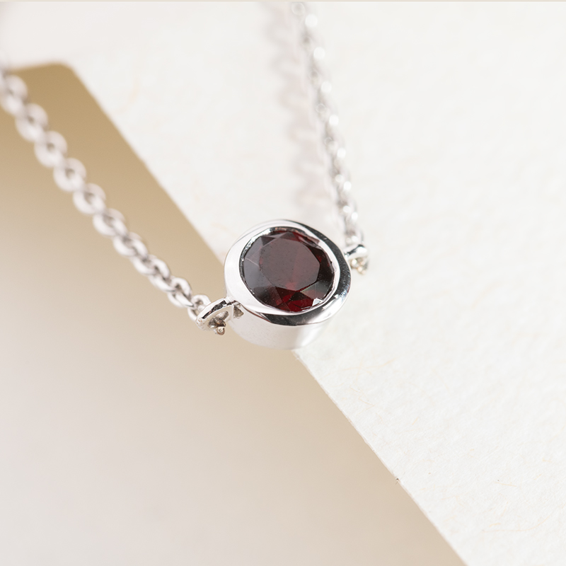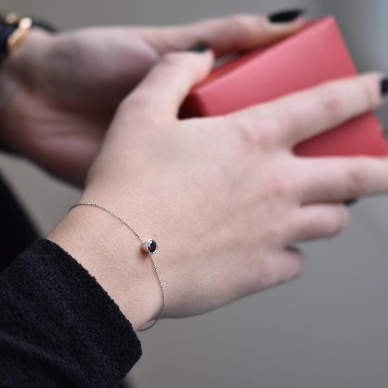 • das minimalistische Platinarmband besticht mit einem leidenschaftlichen Granat