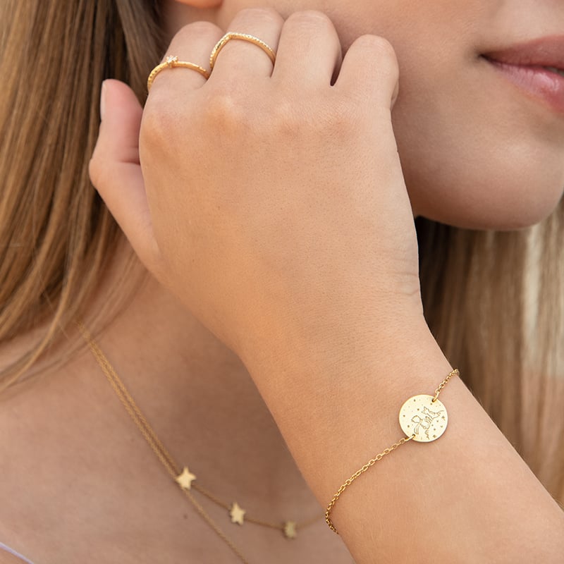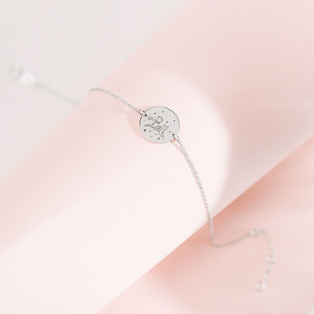 • ein Armband verziert mit einer präzisen Gravur des Kleinen Prinzen und des Fuchses