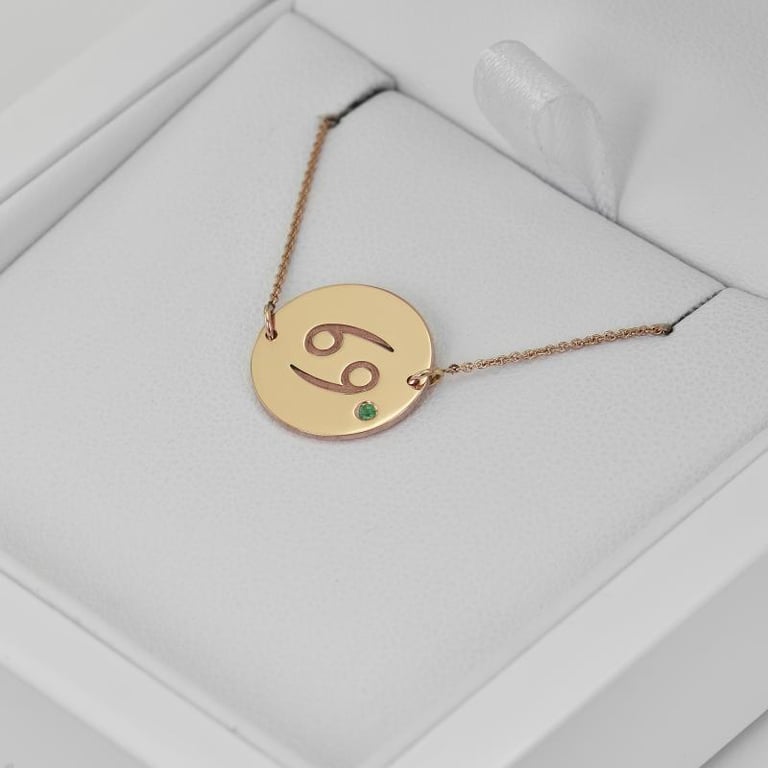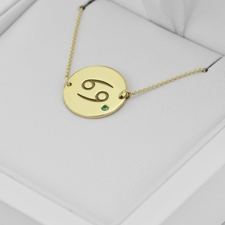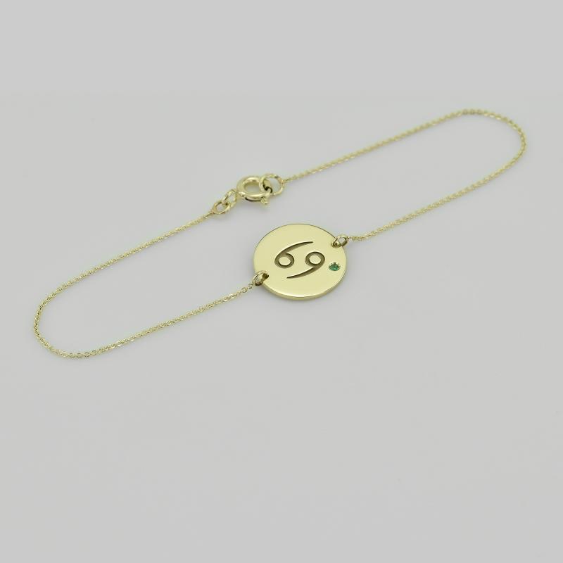 • dieses goldene Armband mit dem Symbol des Sternzeichen Krebs und dem Geburtsstein Smaragd, passt perfekt zur Lebenswelt des Krebses