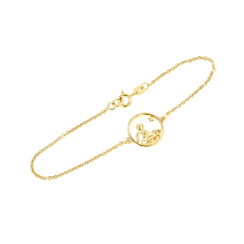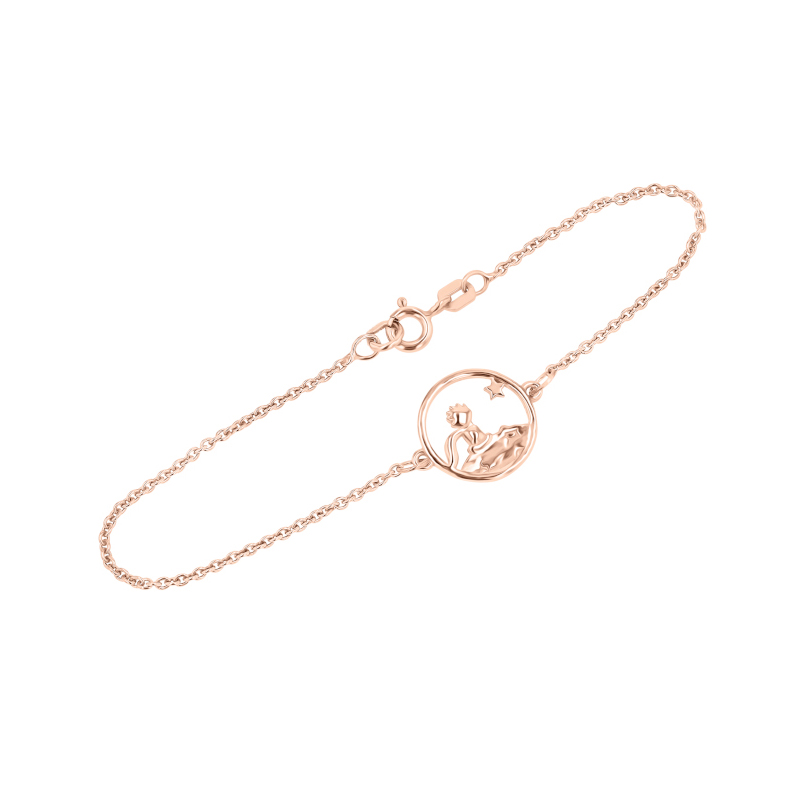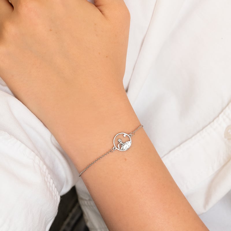 • Armband, das mit einem dezenten Anhänger mit einem Motiv aus der Geschichte des Kleinen Prinzen - einem Jungen, der den Nachthimmel beobachtet - verziert ist